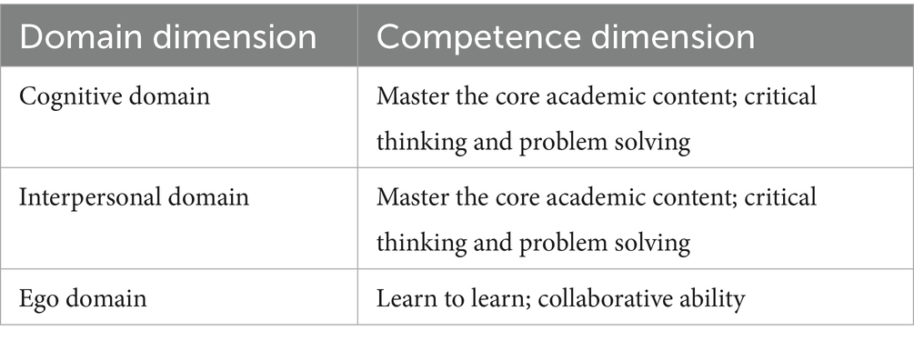 The concept of deep learning in education was initially proposed by Marton and Säljö from the University of Gothenburg in Sweden (Shen, 2015). In 1976, while researching university students engaged in extensive prose reading tasks, they observed differing levels of information processing among students, displaying disparities between surface and deep approaches to learning. Based on this, the two scholars introduced the concept of “deep learning,” defining it as a knowledge transfer process that helps learners enhance their problem-solving and decision-making abilities. The American Institutes for Research further delineated deep learning into three major domains—cognitive, interpersonal, and intrapersonal—forming a compatible framework of deep learning across domains and competency dimensions (Table 3).
