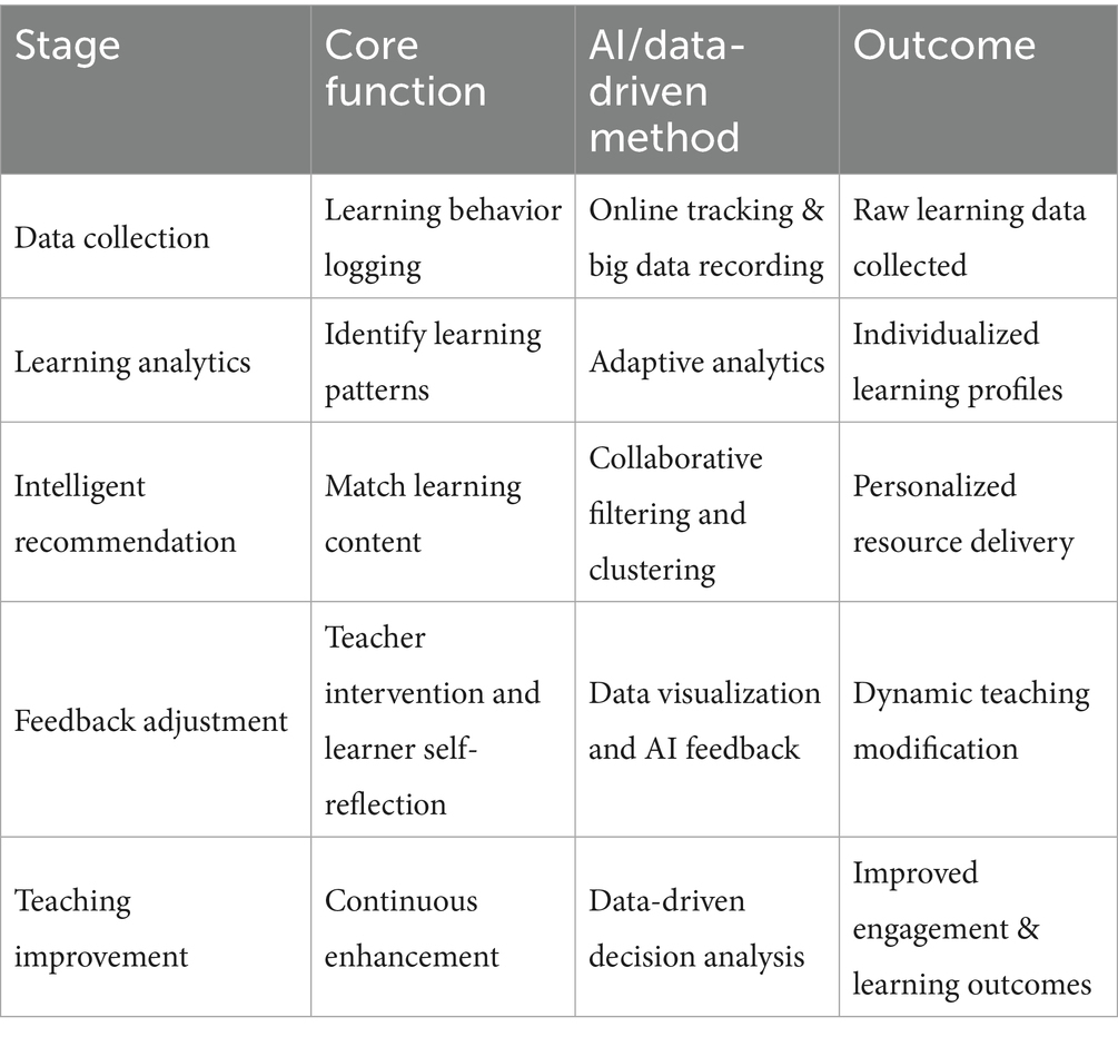 (2) It introduces a data-driven feedback loop that continuously improves teaching design, student engagement, and learning assessment through adaptive data insights.