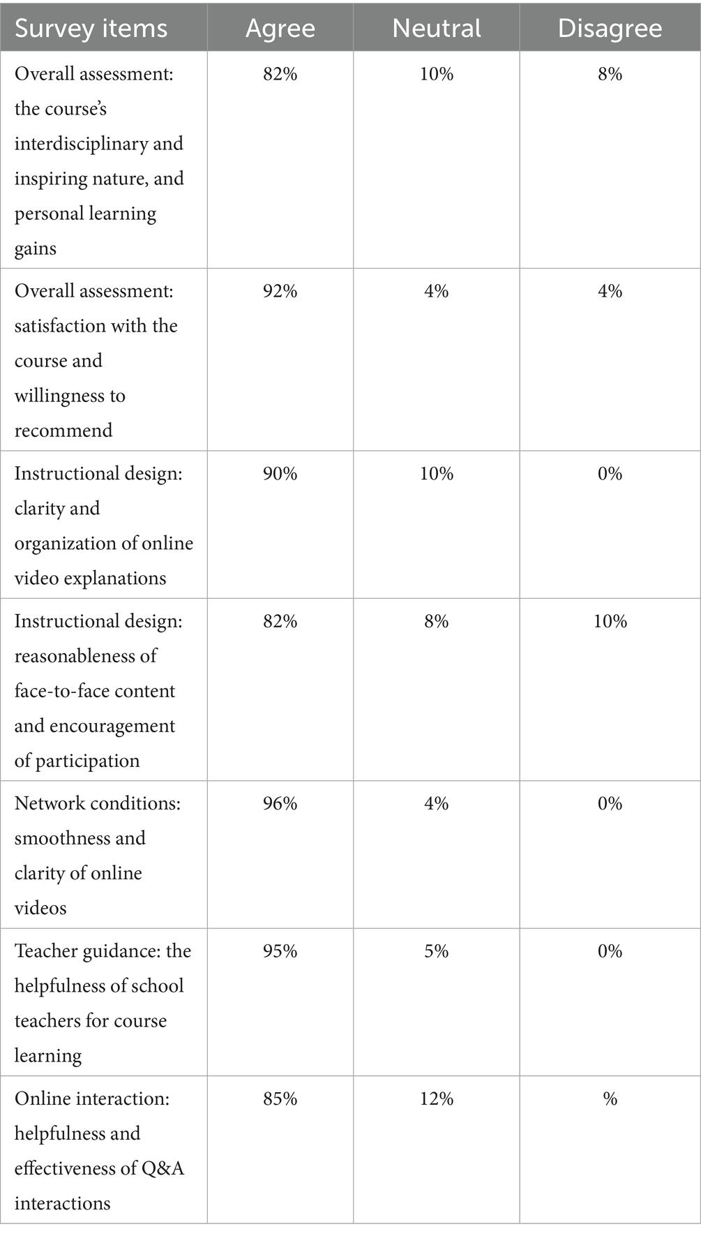 3. Online survey responses assessing students’ perceptions of course design and AI-supported learning experiences.