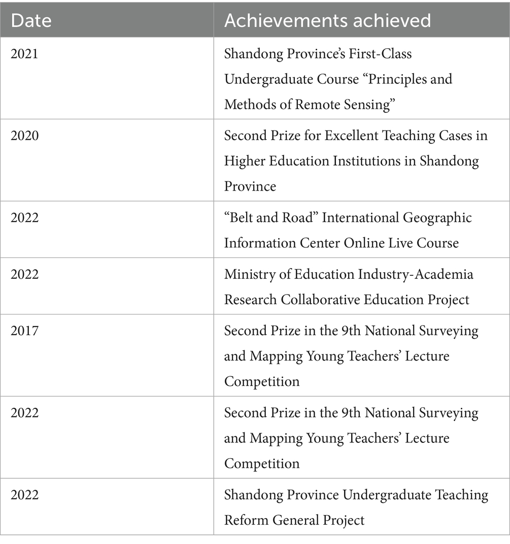 To fully leverage the advantages of remote sensing technology, it is imperative to enhance the effective training of interdisciplinary and innovative talents among remote sensing professionals. The effective cultivation of talent in remote sensing technology is a pressing issue in current remote sensing courses, particularly in undergraduate courses such as “Principles and Methods of Remote Sensing” (Yang et al., 2011). Currently, numerous universities nationwide offer courses related to remote sensing, and our university classrooms play a crucial role in talent development. However, some pressing issues need to be addressed regarding the focus on students’ learning needs and the implementation of the “student-centered” educational philosophy. These issues are primarily manifested in the following aspects: