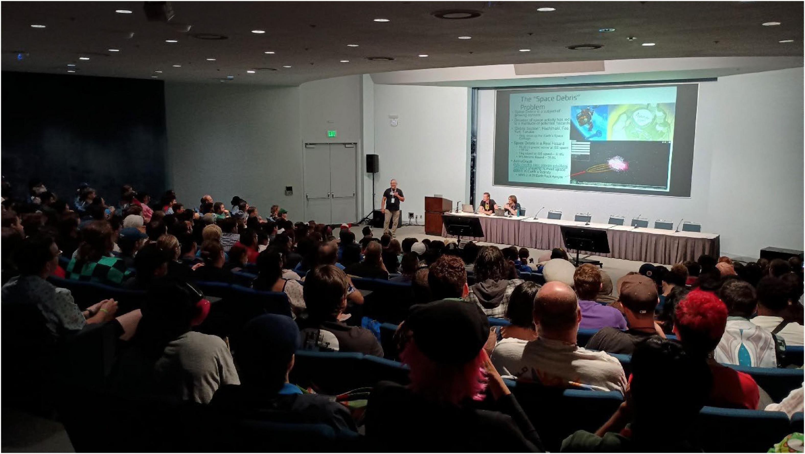 Figure 1. The Physics of Anime Panel at JAMS@AX 2025. For the third consecutive year, the academic panel filled the lecture room. Photo by Billy Tringali.