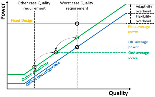 In this article, we discussed in detail the opportunities stemming from offline reconfigurability (OfC) and online adaptivity (OnA). The benefits of OfC and flexible hardware platforms are mainly business related, reducing design and production costs, with a potential overhead in terms of power efficiency. The benefits of OnA, on the other hand, are mainly power efficiency related, due to its ability to adaptively select settings to meet a minimum required quality level in different environments. Yet, OnA comes with additional costs, in the form of 1) additional power consumption to drive the adaptivity and 2) increased optimization complexity. This article creates a roadmap to quickly and efficiently evaluate if OnA saves more power than it costs and whether it is to be preferred over OfC for specific use cases. The main contributions are insights into the adaptivity mechanics; an OfC–OnA optimization protocol with a fast optimizer to deal with many OnA tuning knobs; and its deployment to theoretical and practical use cases.