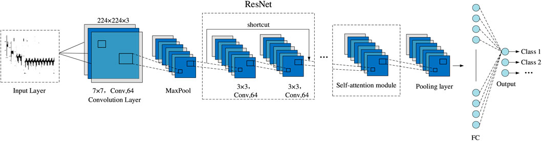 In conventional convolutional neural networks (CNNs), increasing the network depth can lead to vanishing or exploding gradients during backpropagation, which adversely affects training performance and recognition accuracy. ResNet addresses this issue by introducing an innovative skip connection mechanism. This structure allows gradient information to bypass one or more layers during backpropagation, preventing degradation or amplification of the gradients during layer-wise transmission, thereby significantly enhancing the performance of deep models. Moreover, integrating a Self-Attention Module (SA) into CNN architectures can substantially improve the model’s sensitivity to short-time spectral features associated with high-frequency pulses in leakage current signals. It also effectively suppresses background noise, thereby improving the overall recognition performance of insulator leakage current characteristics.