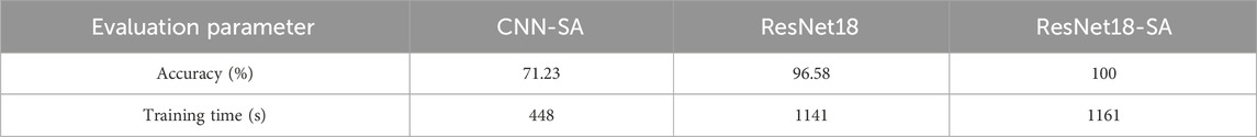 In this study, we employed three different models: CNN-SA, ResNet18, and ResNet18-SA to classify leakage current waveforms of insulators under varying levels of metallic contamination. A comparative analysis of the recognition performance of the three networks is presented in Table 6.