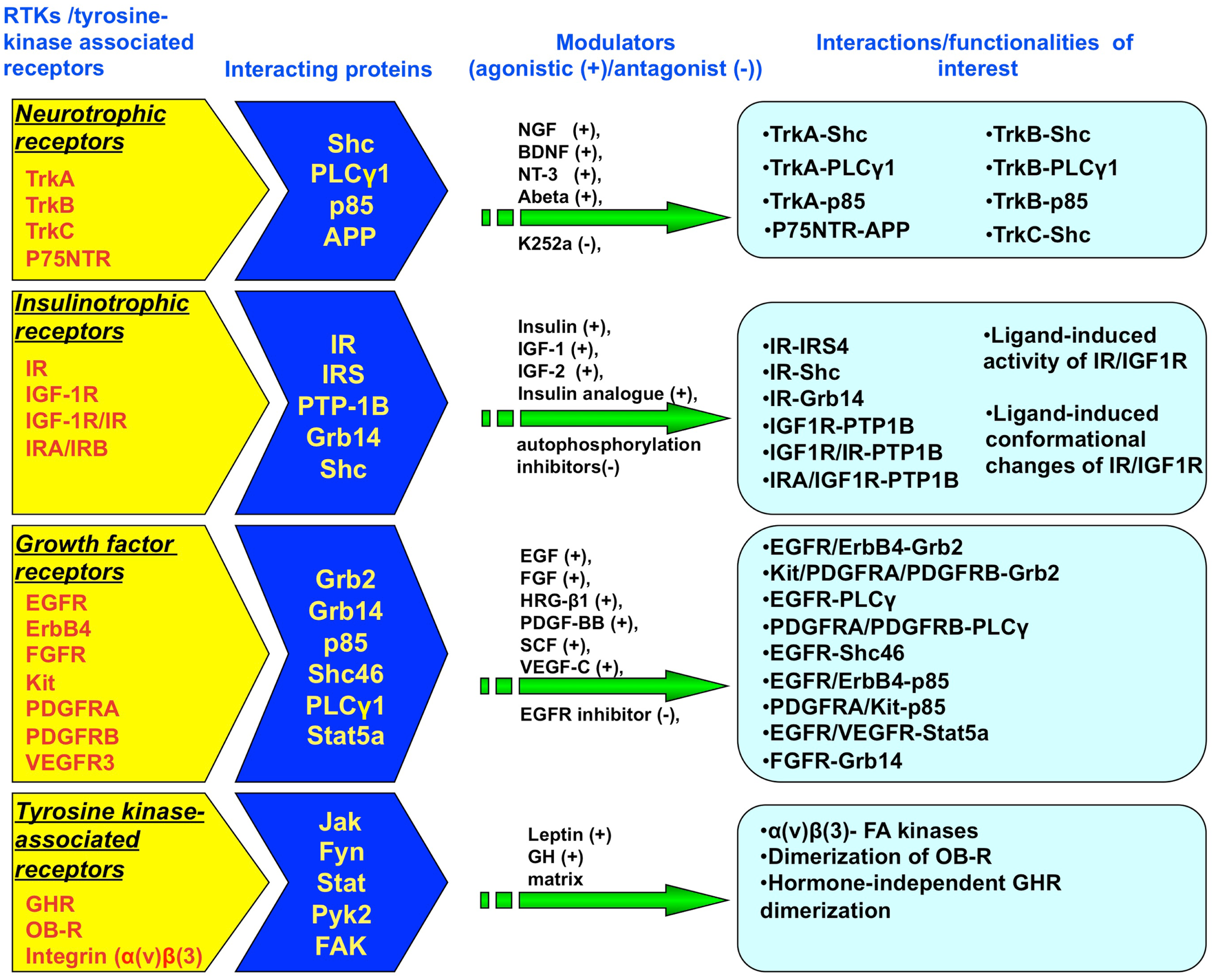 receptor tyrosine kinase, RTK, protein–protein interaction, neurotrophic, insulin receptor, insulin-like growth factor receptor, epidermal growth factor receptor, cytokine receptors
