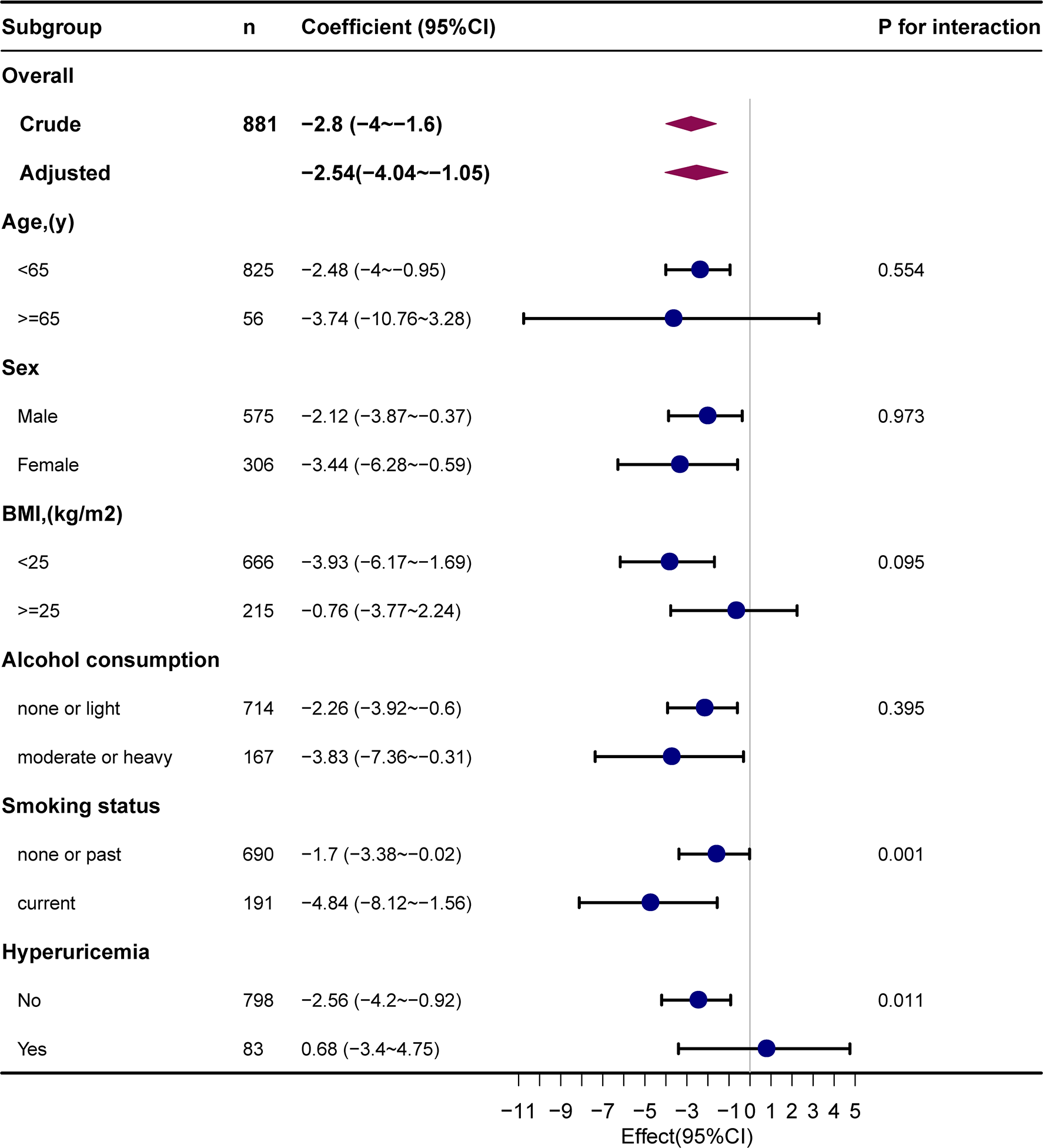 | Uric acid, (mg/dl) | -2.67 (-3.22,-2.12) | < 0.001 |