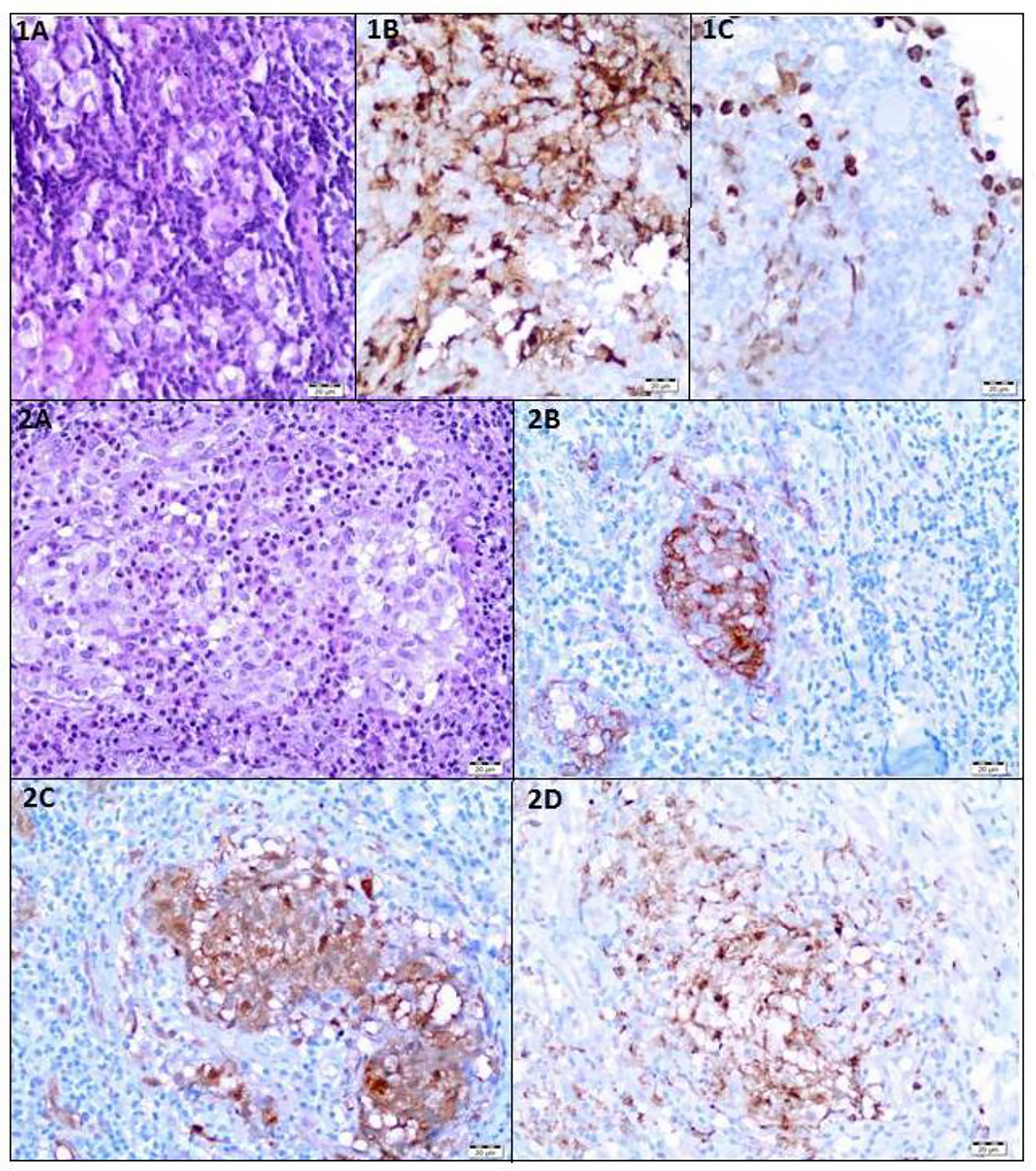 Tumor markers such as alpha-fetoprotein (αFP) and beta-human chorionic gonadotropin (βhCG) were measured in the blood serum and in some cases in the cerebrospinal fluid (CSF).