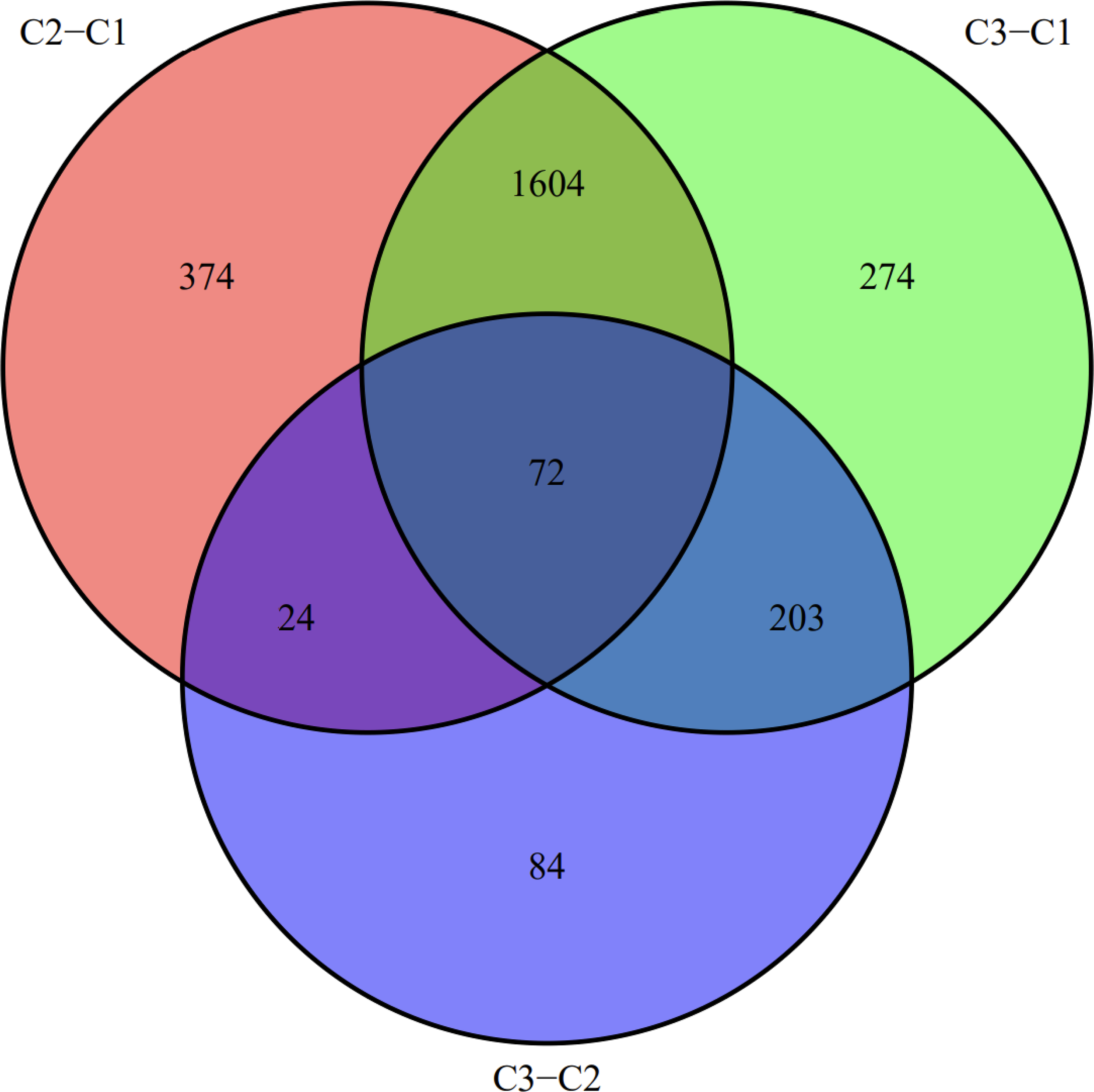 Venn diagram, a common set of differential genes for the three cancer subtypes.