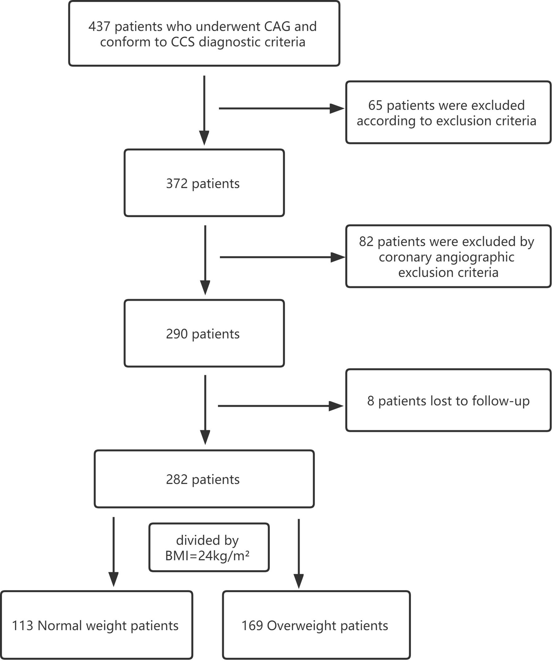 Flowchart of patients enrolled. CAG, coronary angiography;CCS, chronic coronary syndrome; BMI, body mass index.
