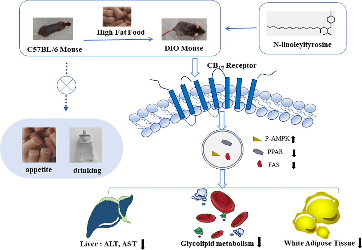 N-linoleyltyrosine (NITyr) showed mild effects in preclinical studies. The research discussed the effect of NITyr on a high-fat diet (HFD) induced obese (DIO) mice, and preliminarily explored its mechanism.