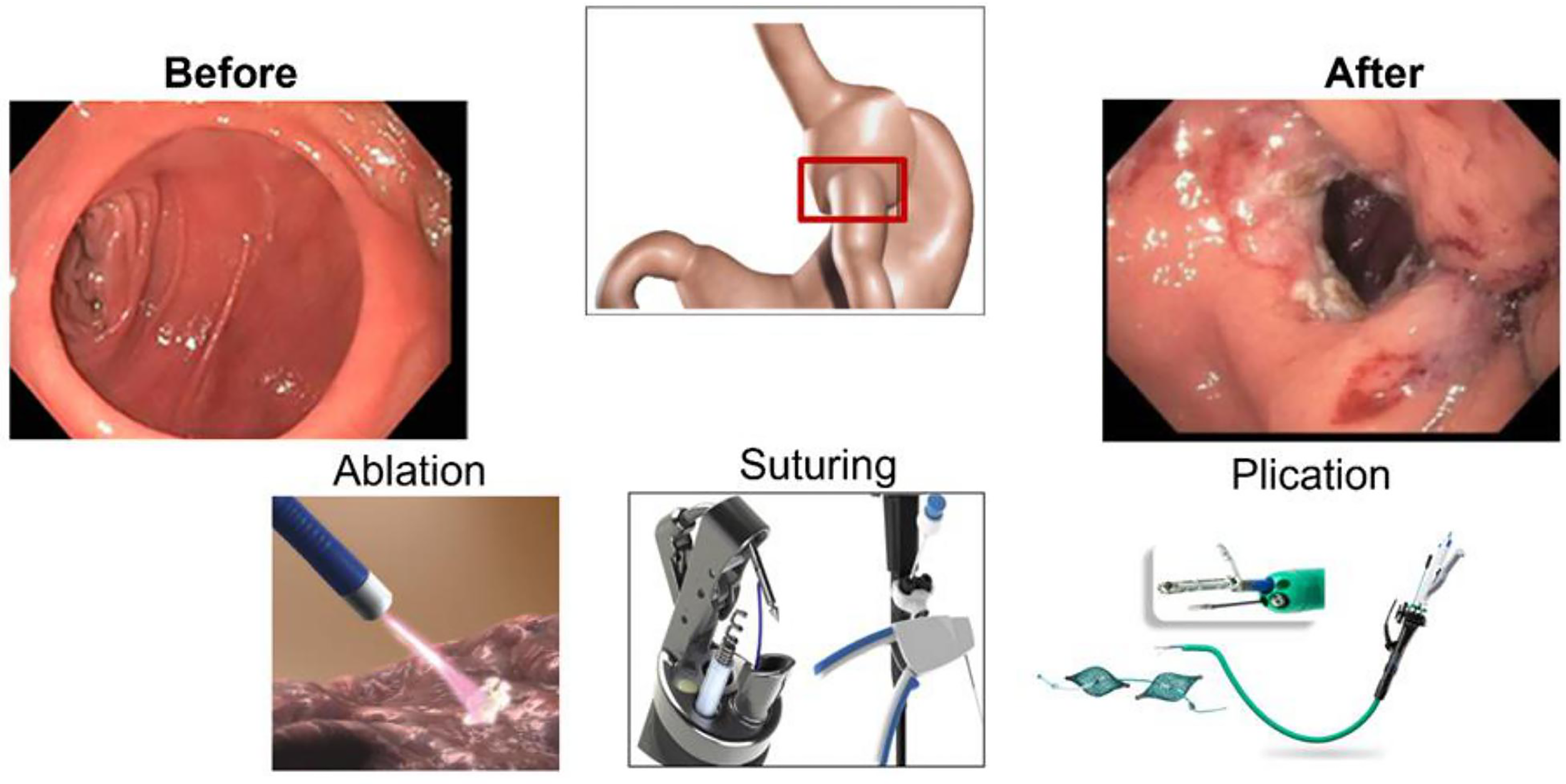 The management of post-procedural WR encompasses several approaches. Surgical revision and conversion to a different MBS, while necessary in some cases, are technically more challenging and associated with higher morbidity and mortality compared to the primary surgical intervention (5). Obesity pharmacotherapies are increasingly being utilized to manage WR though with variable efficacy, limited continuous accessibility, and consideration of cost and patient compliance (6). Endoscopic bariatric therapy presents an anatomy-preserving and minimally invasive option for managing WR in select cases. Several endoscopic revision options exist depending on the initial bariatric surgery type (7).