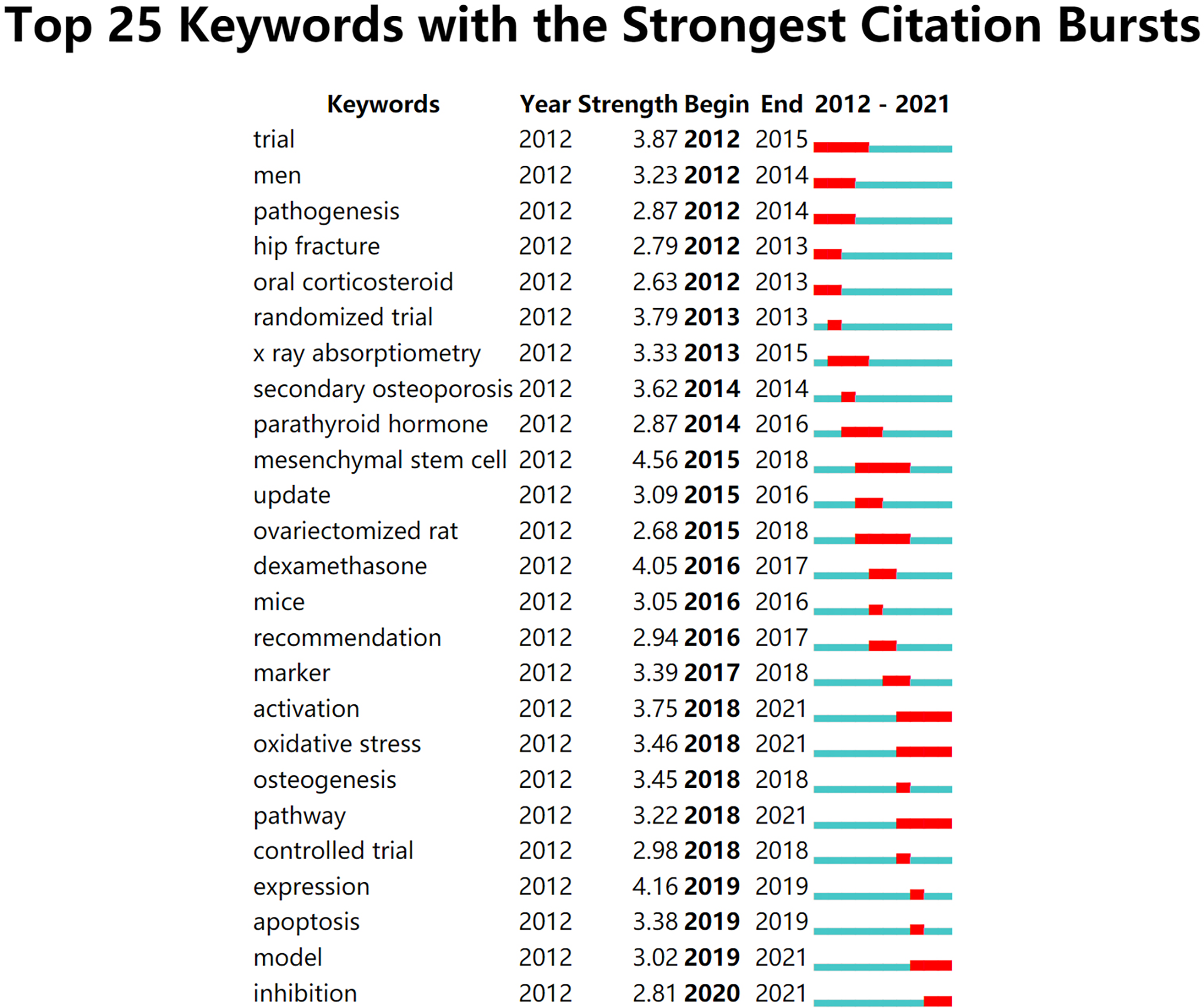 Jiang B, Feng C, Li C, Tu C and Li Z (2022) A bibliometric and visualization analysis of glucocorticoid-induced osteoporosis research from 2012 to 2021. Front. Endocrinol. 13:961471. doi: 10.3389/fendo.2022.961471