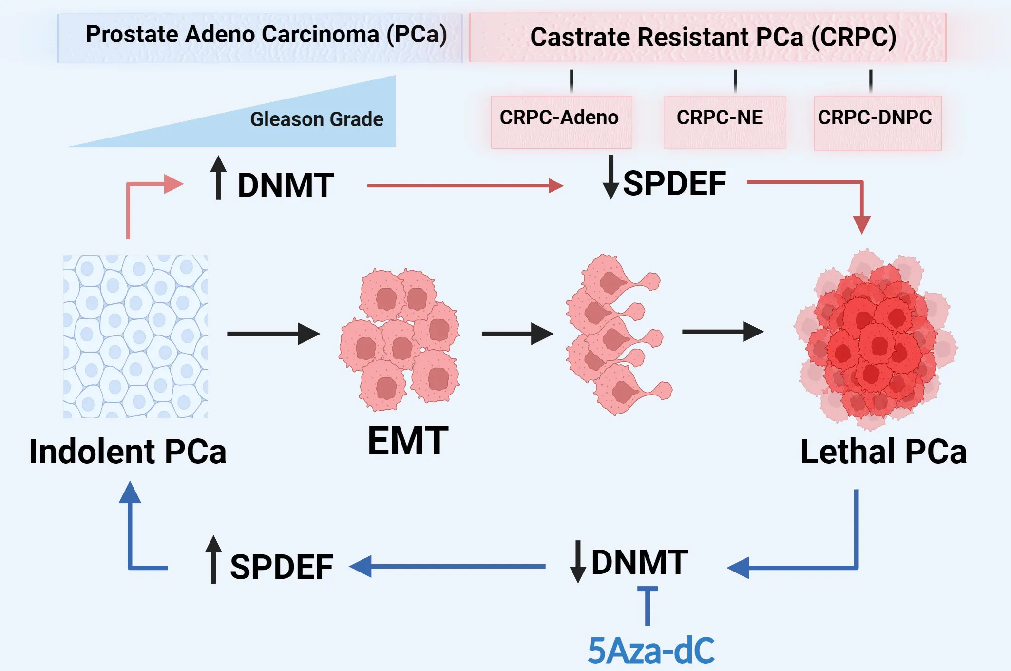 SPDEF, prostate cancer, CRPC, DNMT, epigenetics, DNA methylation, plasticity