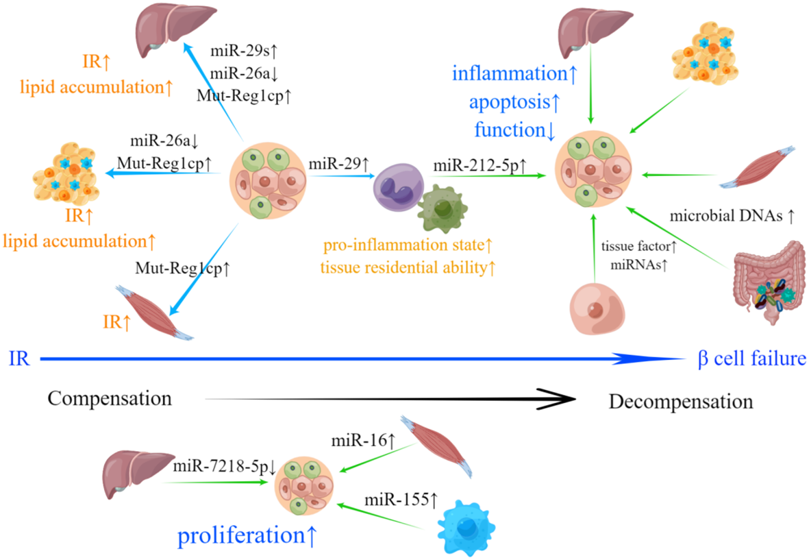 4.3.2 From peripheral tissues to pancreatic islets: EVs serve as the initiator of β-cell compensation and failure