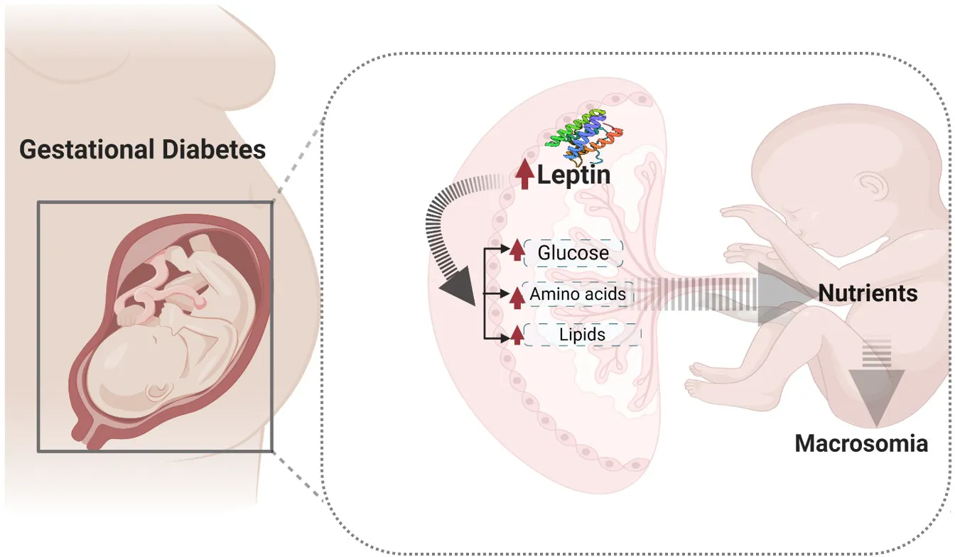 gestational diabetes mellitus, placental transport, leptin, glucose, amino acids, lipids, fetal macrosomia, nutrient transporters
