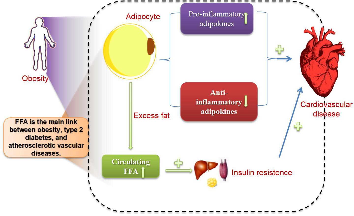The mechanisms by which FFA induce atherosclerosis and the factors influencing FFA level.