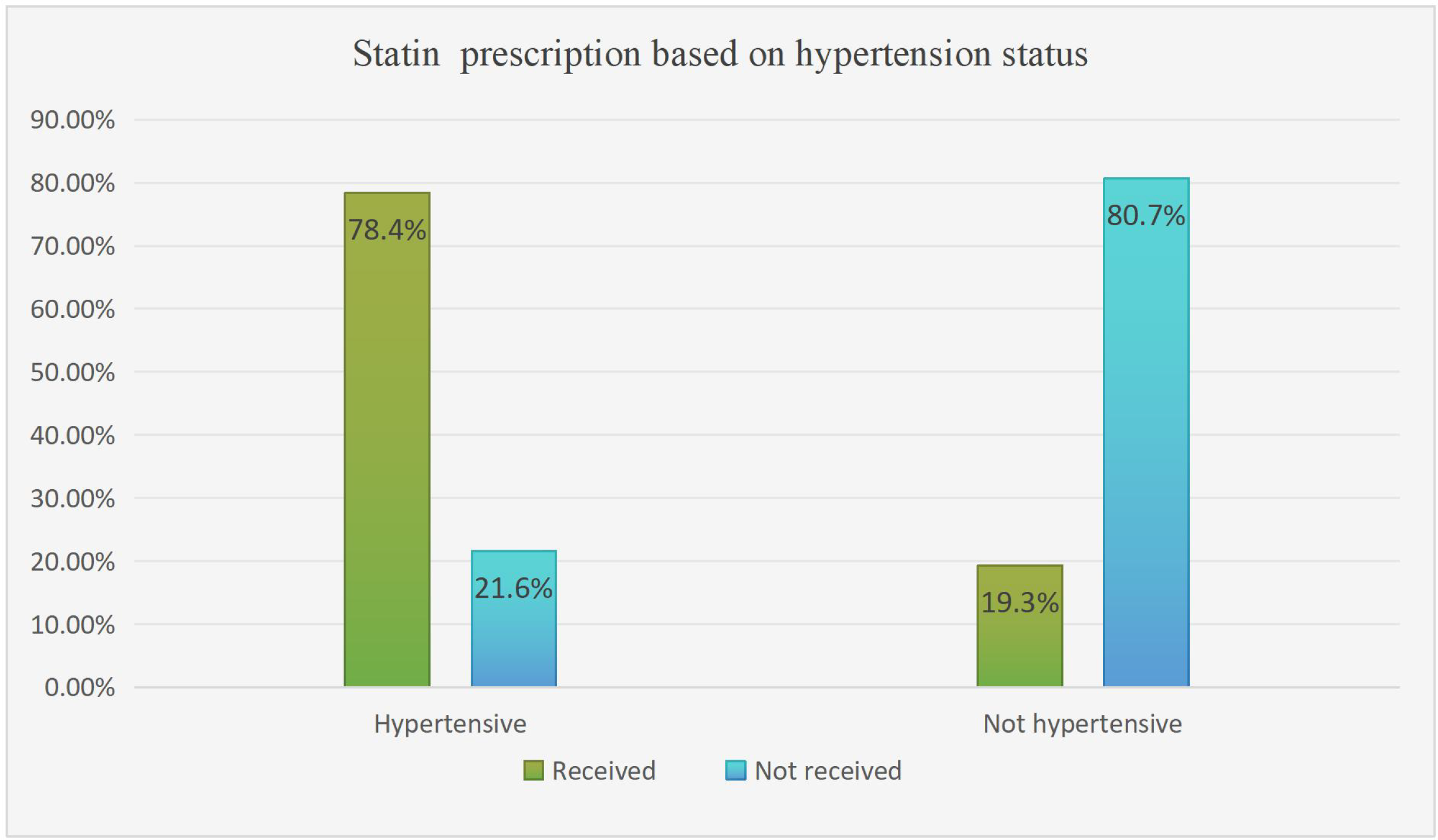 The collected data were checked for completeness, coded, entered into Epi Data 7.2 software, cleaned, and exported to SPSS version 26 (IBM, USA) for statistical analysis. The Kolmogorov–Smirnov test and box plots were used to examine the data distribution and detect outliers. The results of the descriptive analyses are presented as frequencies or means ± SDs, depending on the nature of the data. Finally, the results are presented in the form of tables, figures, and narratives. The Hosmer–Lemeshow test and the multicollinearity test were used to measure model fitness. A chi-square test was used to analyze the associations between categorical variables. The strength of the association between different independent factors and statin utilization was assessed using odds ratios (ORs) and 95% confidence intervals (CIs) from logistic regression. Variables with p-values< 0.25 were considered candidate variables for multivariable logistic regression. Finally, variables with a P value less than 0.05 in multivariate logistic regression were considered to be significantly different.