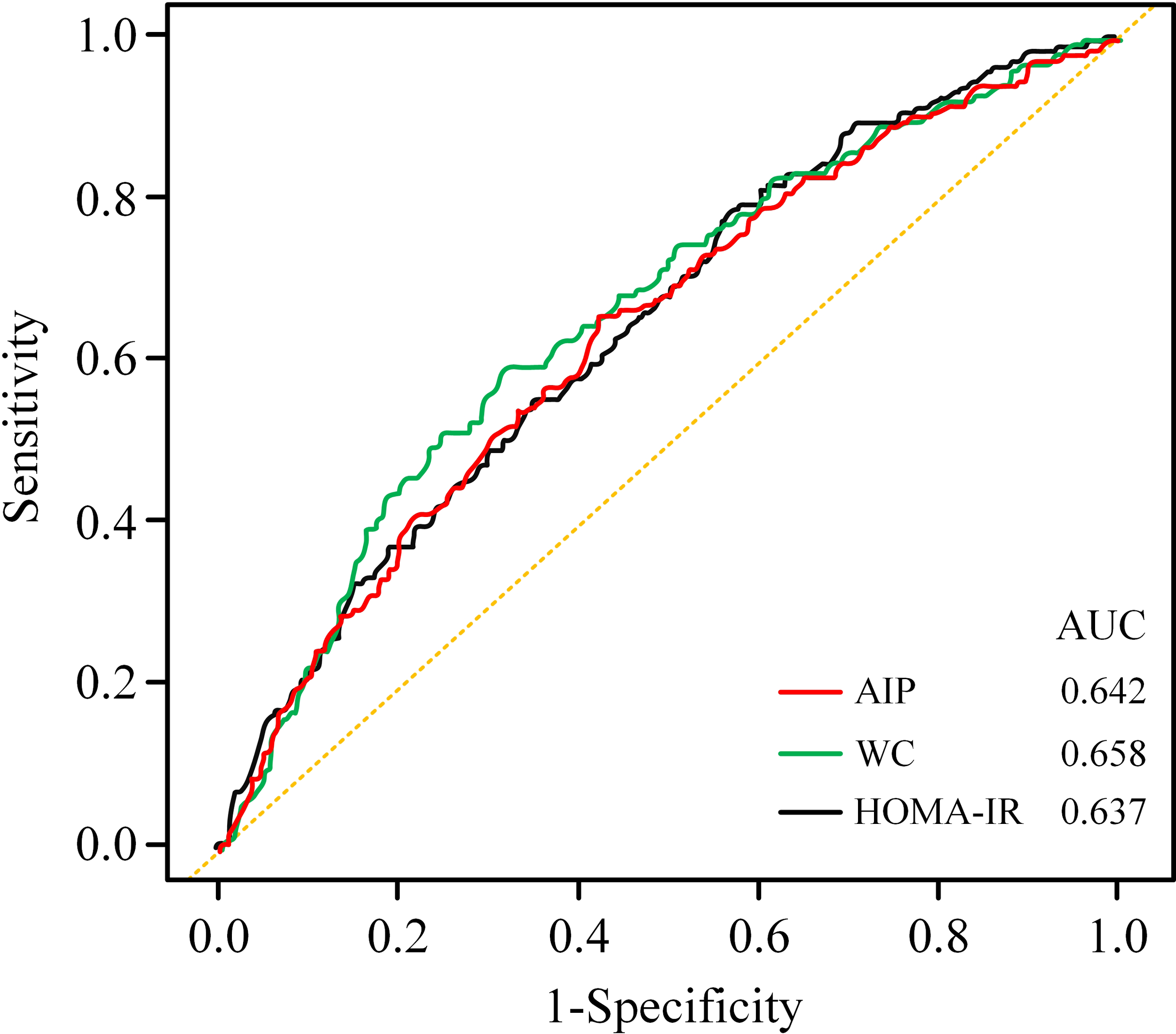 | AIP | 2.00(1.22–3.27) 0.006 | 1.89(1.11–3.22) 0.018 | 1.94 (1.13–3.33) 0.016 |