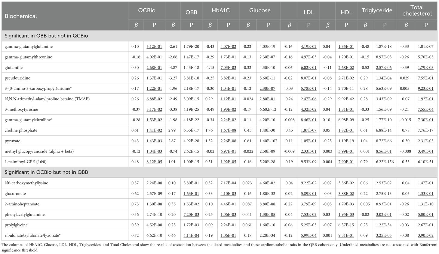 Table 2. The significant metabolite in the QCBio cohort with P< 10−8 and their corresponding results in the QBB cohort.