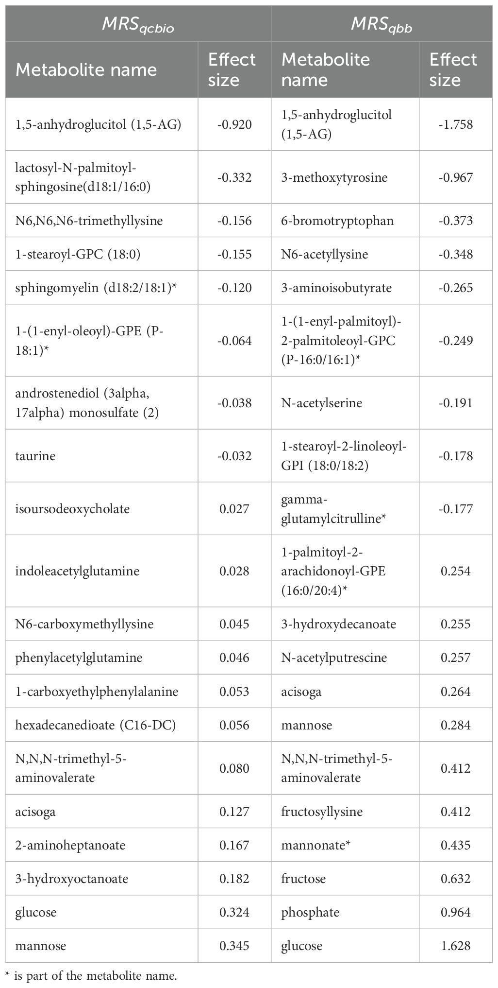 Table 5. The list of top 20 metabolites in the metabolite risk score developed in QCBio and QBB.