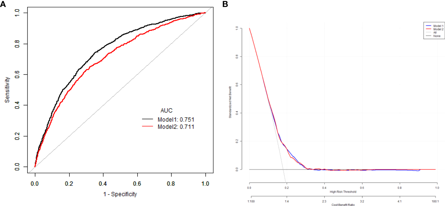 The present study conducted a retrospective analysis of a total of 1817 patients diagnosed with T2DM who were admitted to the Department of Endocrinology at Peking University International Hospital from January 2017 to August 2021. The study population comprised 1053 males and 764 females. All participants in this study were diagnosed with diabetes according to the diagnostic criteria for diabetes established by the World Health Organization (WHO) in 1999 (13). The criteria include :(1) Experiencing typical symptoms of diabetes with random blood glucose levels ≥ 11.1mmol/L; (2) fasting blood glucose levels ≥ 7.0mmol/L; and (3) blood glucose levels ≥ 11.1mmol/L during oral glucose tolerance tests or after ingesting 75g of glucose for 2 hours. Patients who did not exhibit any symptoms of diabetes were required to undergo repeated testing on another day. The exclusion criteria for this study were as follows: (1) patients with type 1 diabetes, gestational diabetes, and other special types of diabetes; (2) patients with acute complications of diabetes; (3) patients with urinary tract infection, hematuria (including the menstrual period), and non-DKD or ESRD requiring dialysis (4) patients with hematological diseases and malignant tumors.