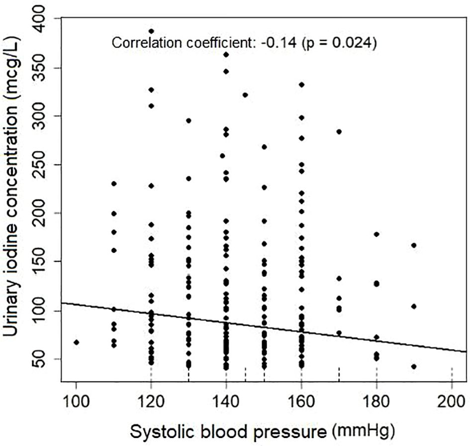 In this study, SBP was associated with lower UIC levels, possibly due to reduced sodium intake. A study with 241 pregnant women who followed a low-sodium diet found a 112% increased risk of iodine deficiency, suggesting that pregnant women on such a diet may require iodine supplementation (14). New studies would be necessary to specifically analyze this hypothesis.