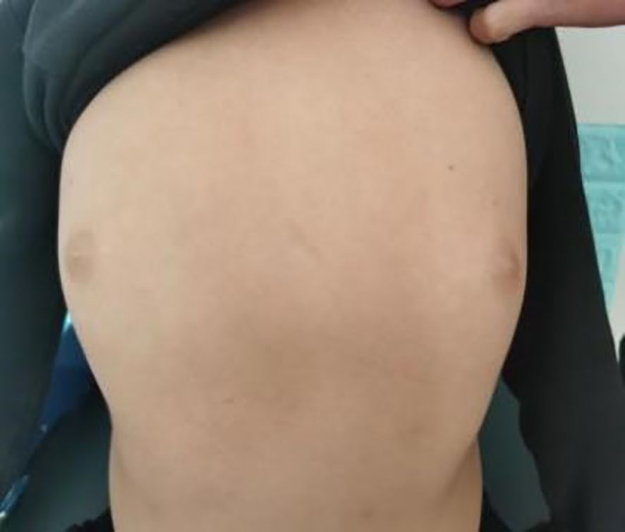 Comprehensive biochemical analysis and sex hormone panel (six parameters) were within normal limits. Chromosomal karyotyping confirmed a 46XY karyotype. The thyroid autoantibody panel (four parameters) was normal. The glycated hemoglobin (HbA1c) level was 5.9% (normal: 4.0-6.0%), while the 25-hydroxy vitamin D level was 14.4 μg/L (normal: ≥ 30 μ g/L). The blood insulin level was 15.5 μIU/mL (normal: 6-27uIU/mL).