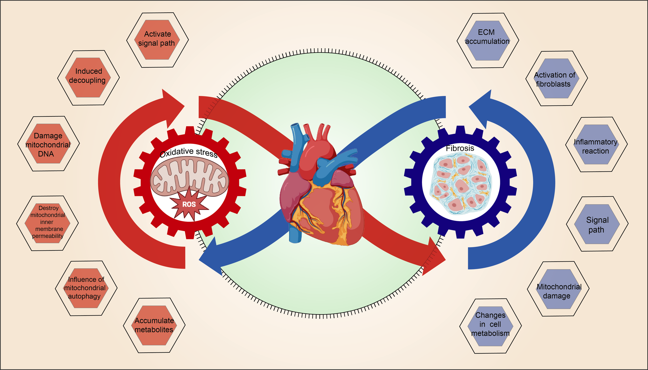 The interaction between mitochondrial oxidative stress and myocardial fibrosis, which forms a vicious cycle, is illustrated in Figure 3.