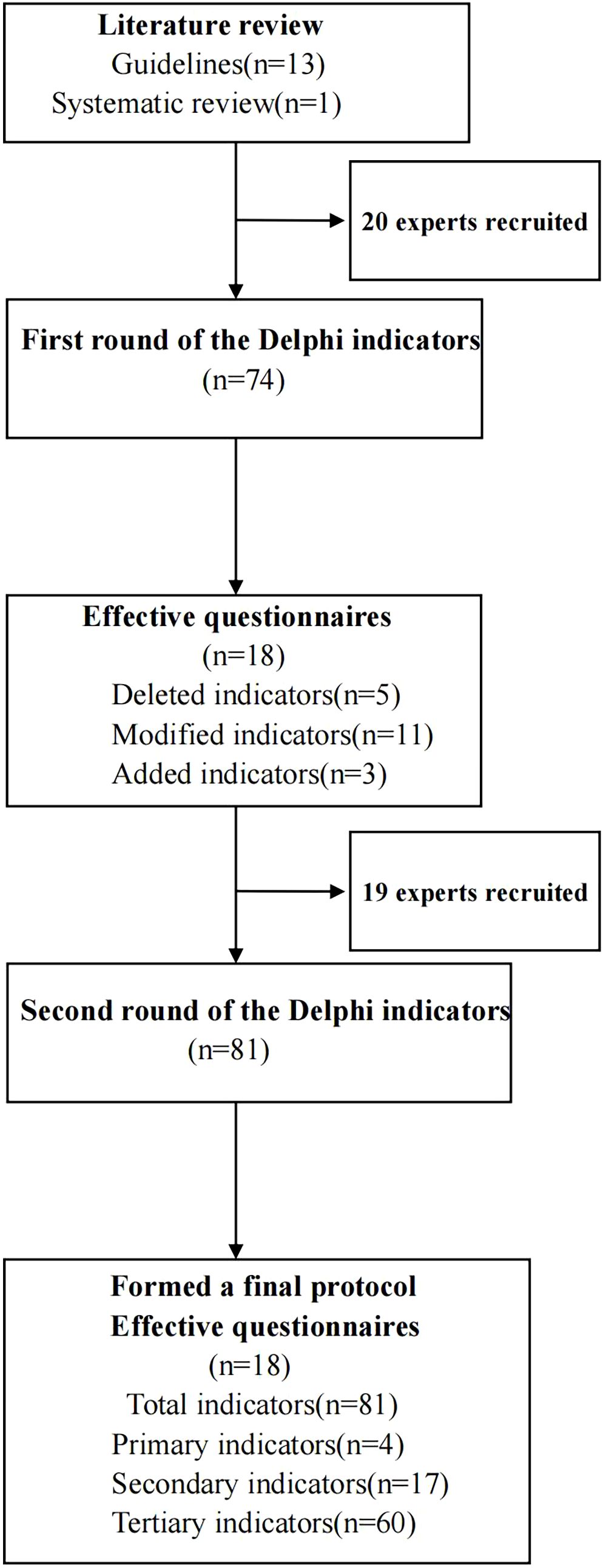 During the second round of expert consultation, one expert suggested adding indications for “3.3.1 Timed voiding” and “3.3.2 Delayed voiding.” Following discussions, the panel reached a consensus on a management protocol comprising four primary indicators, 17 secondary indicators, and 60 tertiary indicators.