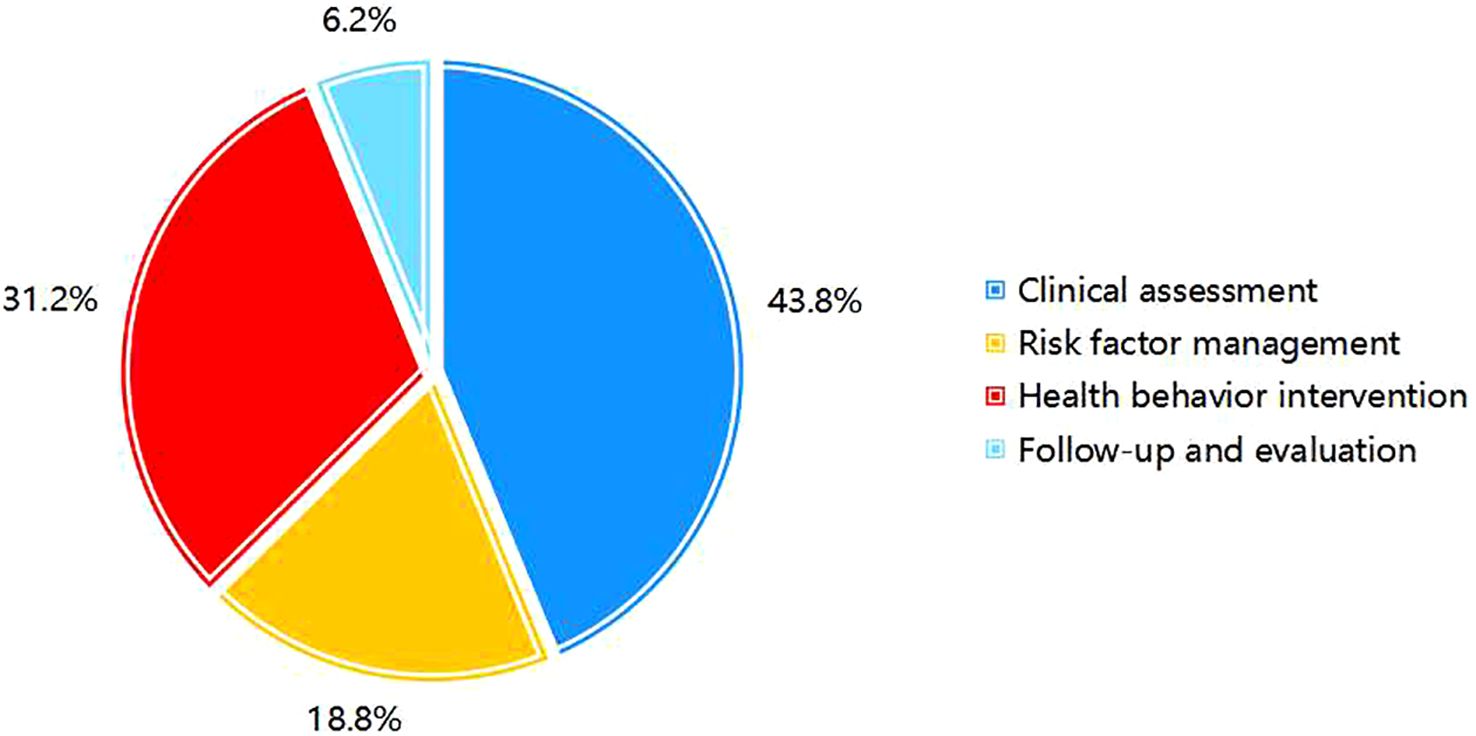 The experts recommended removing “2.2.4 Antihypertensive drug treatment” and “2.3.3 Lipid-lowering drug treatment,” as these responsibilities primarily fall under specialists for diagnosis and prescription. For “3.2.1 Dietary management” and “3.2.2 Exercise management,” the experts advised simplifying the language to improve clarity.
