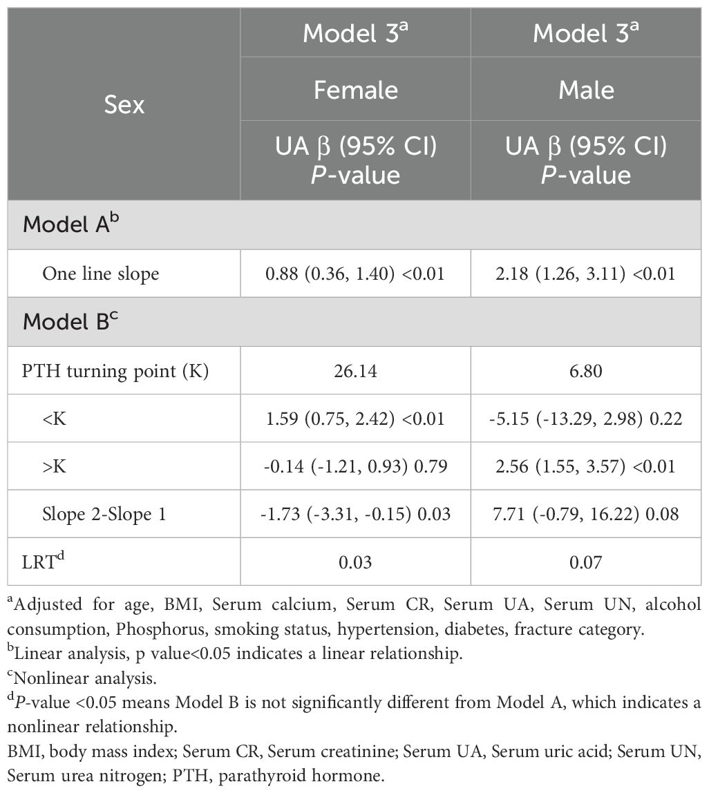 3.3 Sex-stratified analysis of the association between PTH and UA concentrations