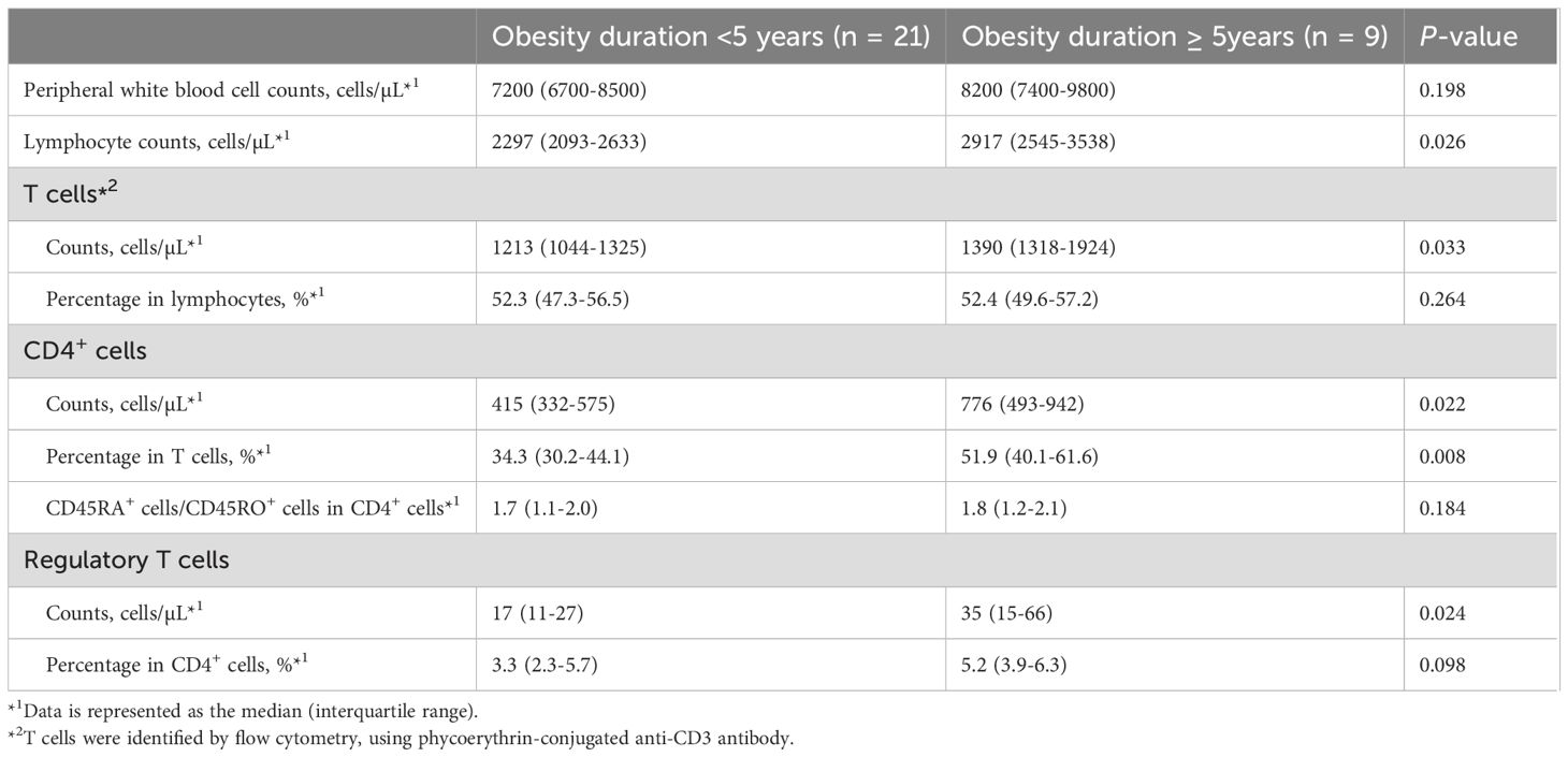Table 5. Comparison of lymphocyte subpopulations in obese children between obesity duration < 5 years and ≥5 years.