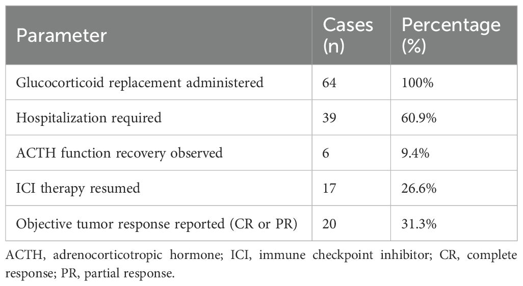 Table 3. Treatment approaches and clinical outcomes in patients with ICI-associated adrenal insufficiency (n = 64).