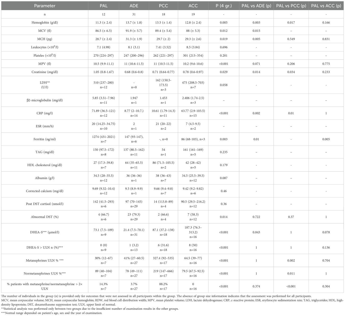 Table 2. Selected laboratory features of patients with PAL, ADE, PCC and ACC.