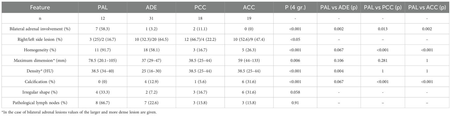 Table 3. Radiological characteristics of patients with PAL, ADE, PCC and ACC.