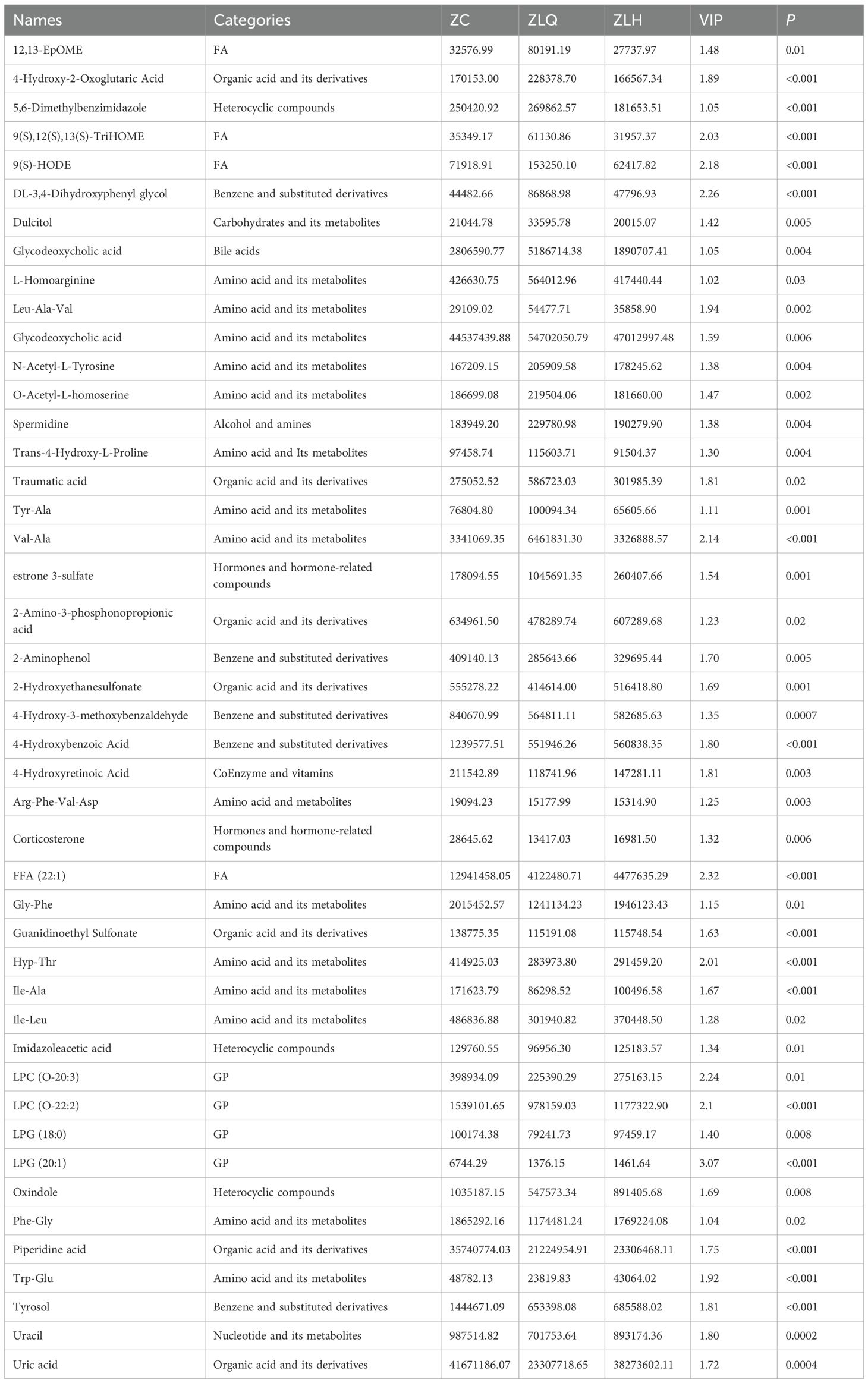 3.2.1 Identification and screening of differential metabolites