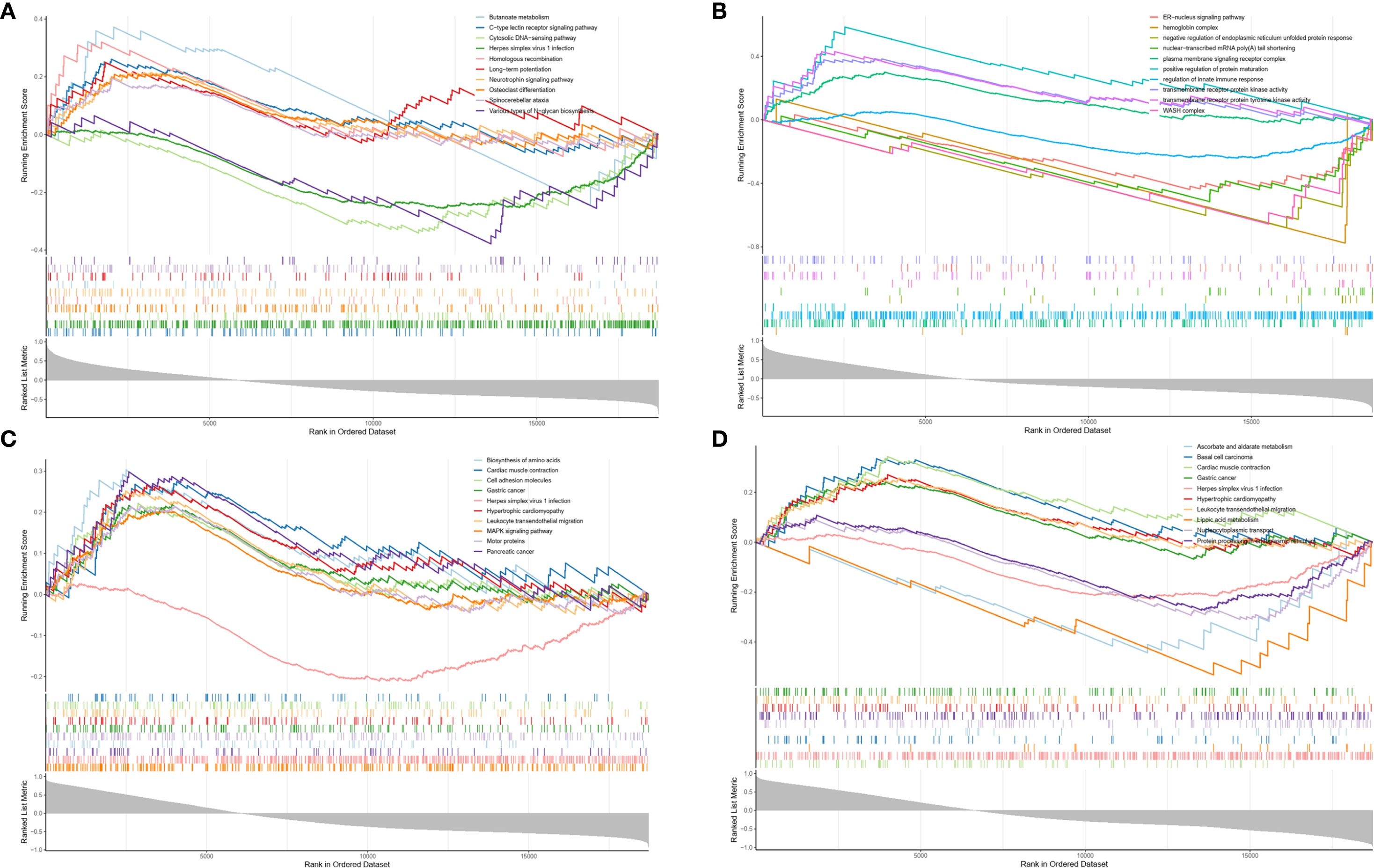 This study calculated the correlations between four target genes and other genes, and based on the strength of these correlations, relevant gene sets were identified. GSEA was carried out on the key gene sets using the ClusterProfiler package (v4.10.1).