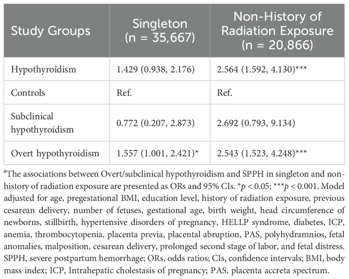 Table 3. Stratified analysis in the relationship between hypothyroidism and SPPH by logistic modelsa.