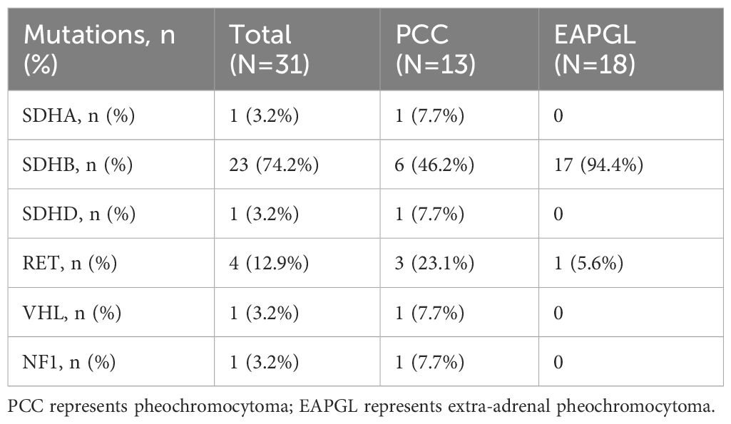 Table 2. Distribution of genetic mutations in PCC and EAPGL patients.