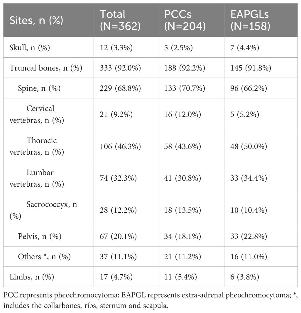 Table 4. Distribution of bone metastases between the PCC and EAPGL groups.