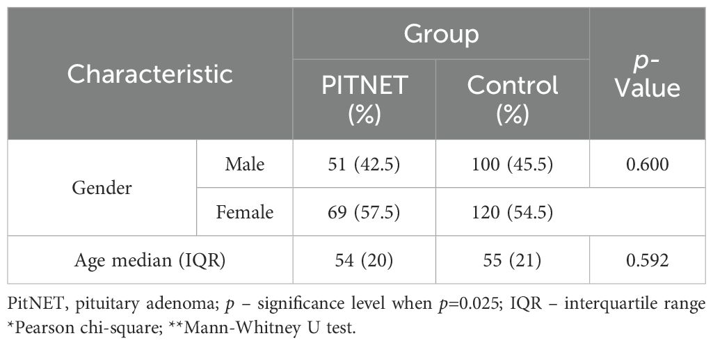 Binary logistic regression also revealed no statistically significant differences between PitNET patients and the control group (Table 6).