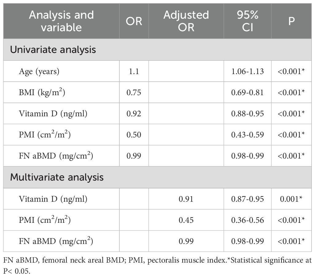 Table 4. Univariate and multivariate logistic regression analysis of independent factors for sarcopenia.