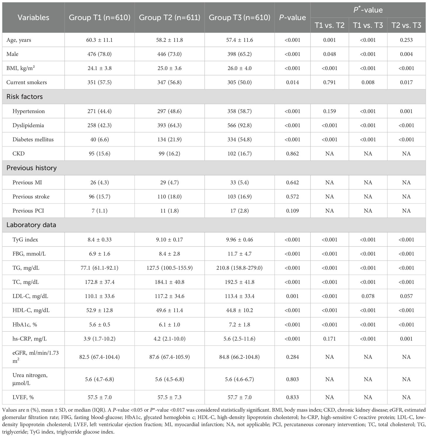 Table 1. Baseline clinical characteristics of STEMI patients stratified according to tertile of TyG index.