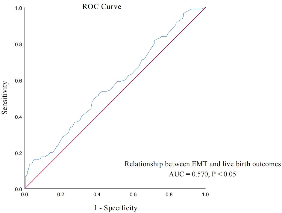 Figure 3. ROC curve: analyze the relationship between EMT on transfer day and live birth of POSEIDON group 2 patients.