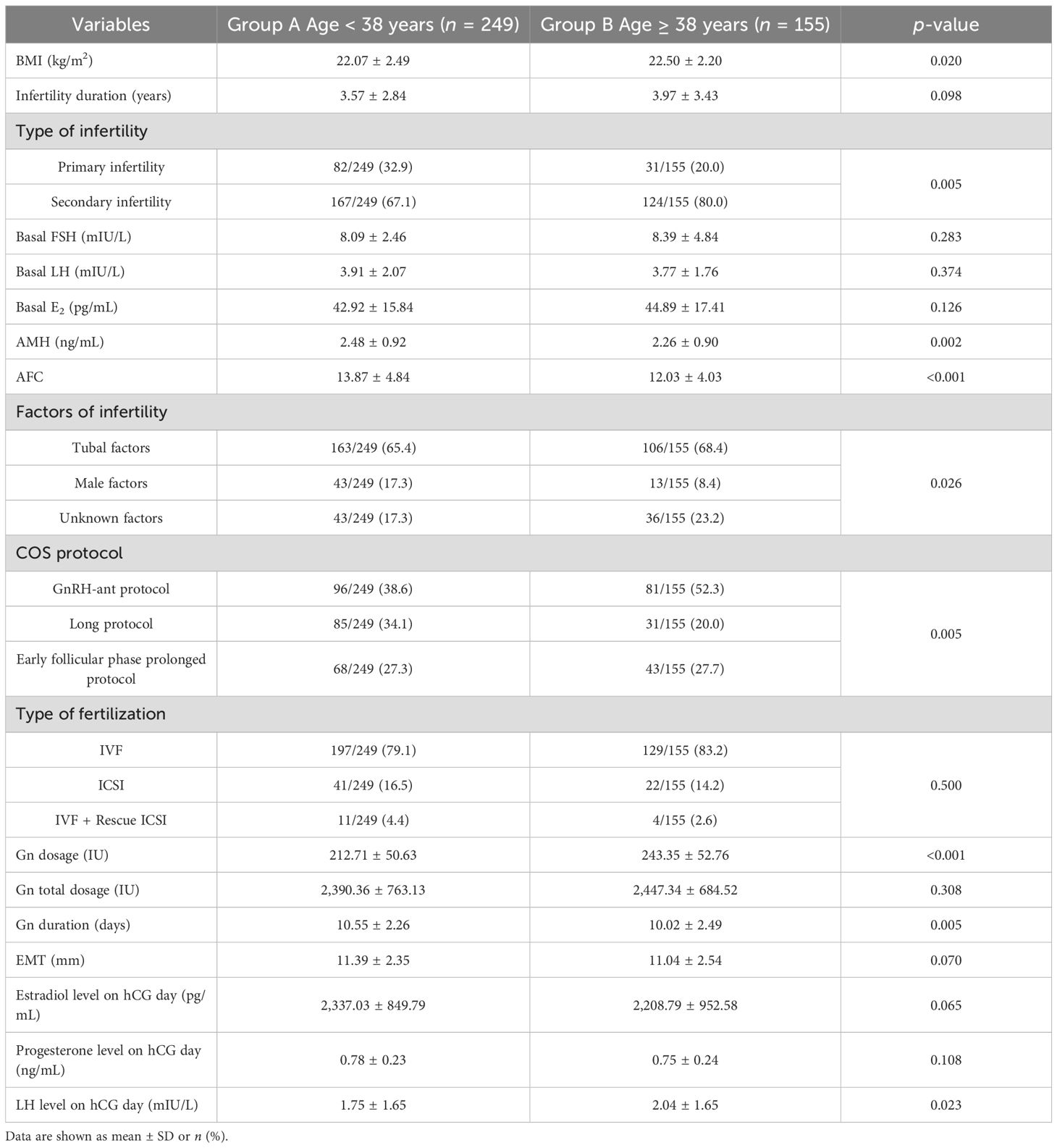 A total of 404 POSEIDON group 2 patients were included in this study according to the above inclusion and exclusion criteria, as shown in Figure 1.