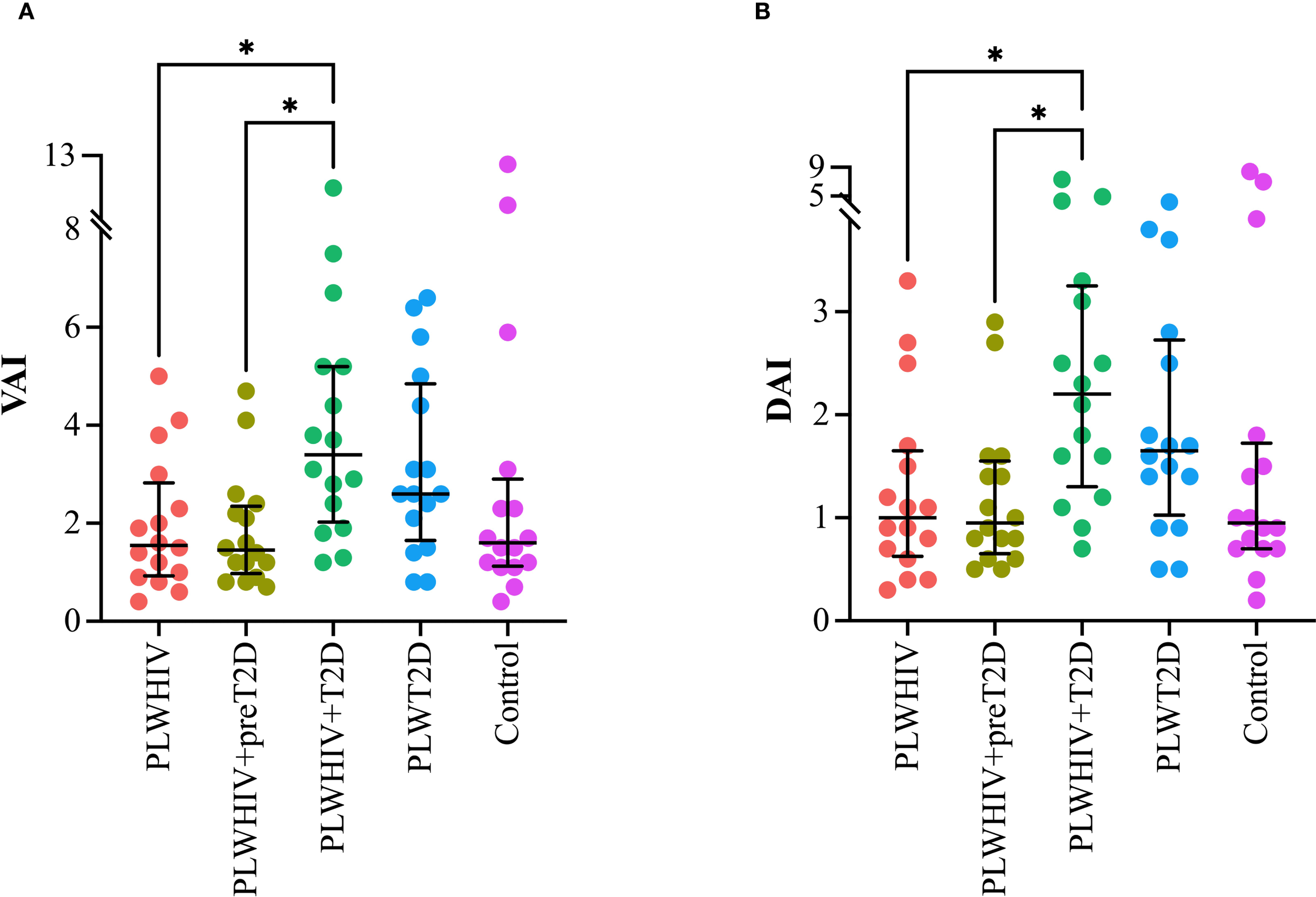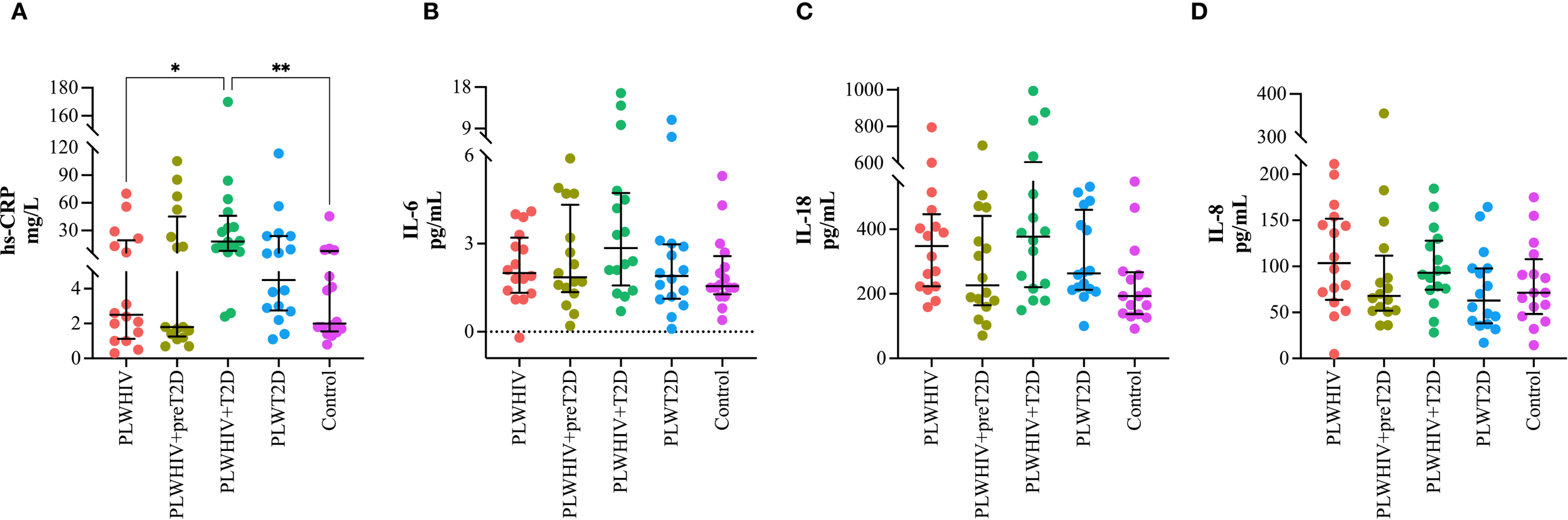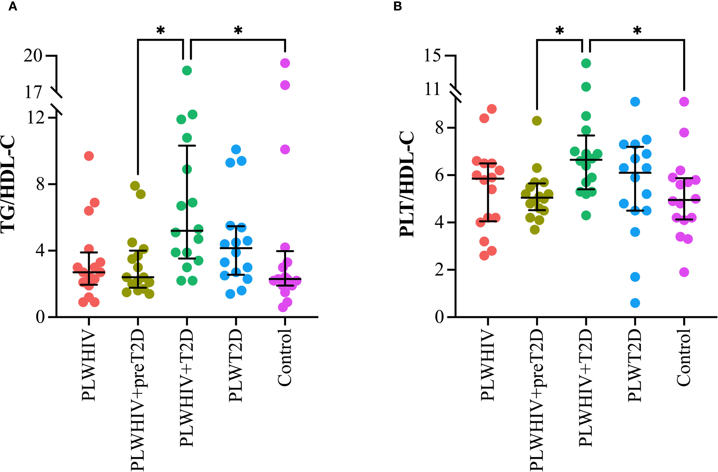| PLWHIV (n=16) | PLWHIV+preT2D (n=16) | PLWHIV+T2D (n=16) | PLWT2D (n=16) | Control (n=16) | P value | |