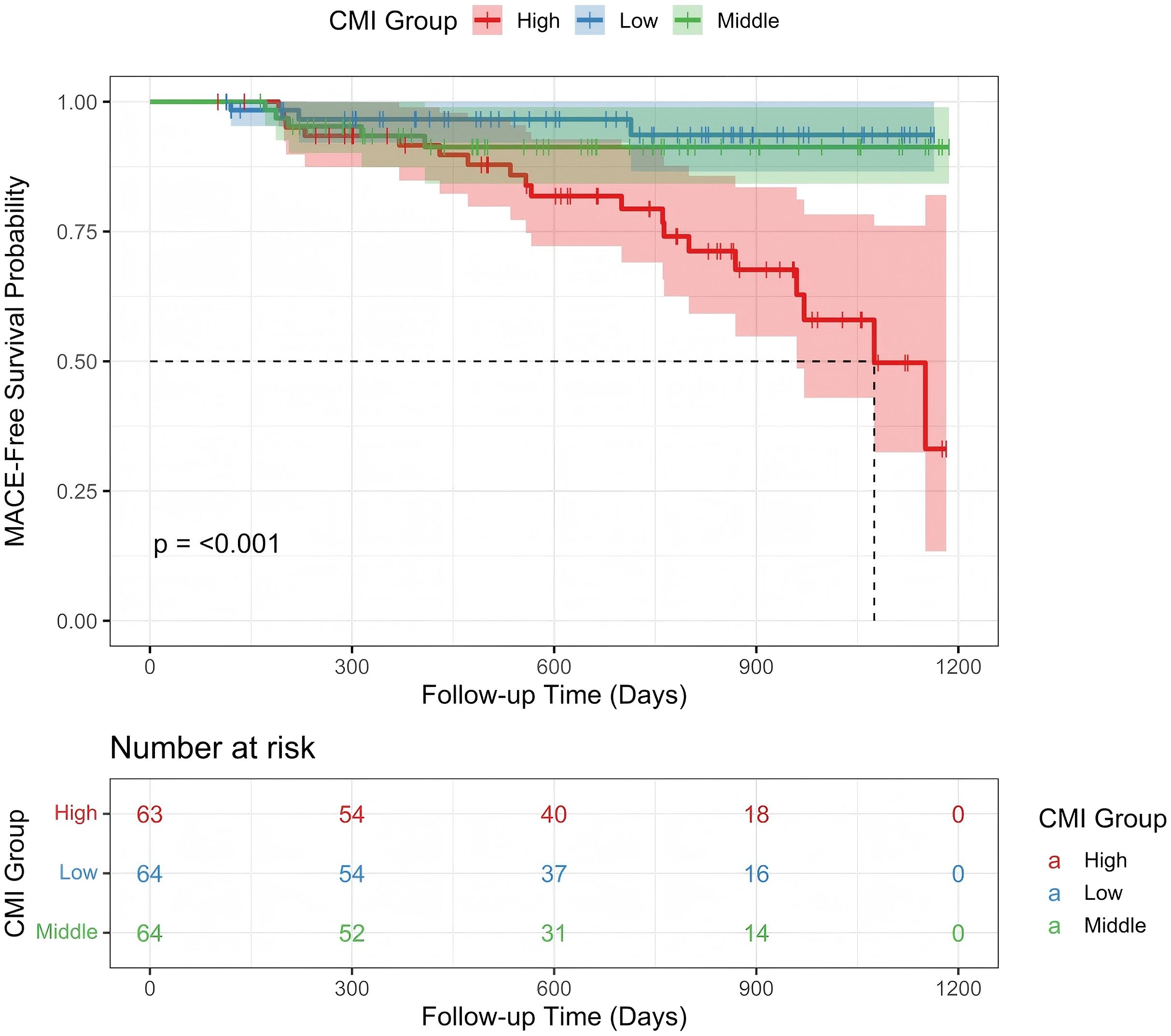 Nonetheless, this study has several limitations. First, it was a single-center retrospective analysis with a modest sample size, which may introduce selection bias and data incompleteness. Second, the study did not include measurements of key mechanistic biomarkers related to inflammation, oxidative stress, or insulin resistance, limiting insight into the biological pathways linking CMI to cardiovascular outcomes. Third, the relatively short median follow-up period may not fully capture the long-term dynamic relationship between CMI and MACE. Therefore, future research should aim to validate these findings in larger, multicenter, prospective cohorts with extended follow-up durations to confirm their robustness and generalizability in diverse clinical settings.