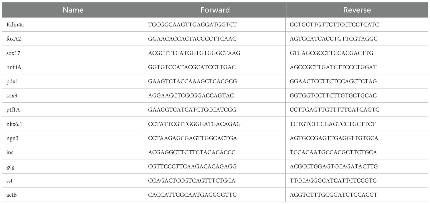 PureLink™ HiPure MaxiPrep kit (K210006), and Fluoromount-G™, with DAPI (00-4959-52) were obtained from Invitrogen, United States; Recombinant pancreatic and duodenal homeobox 1 (PDX1) (ab219207), and anti-NKX6.1 antibody (ab221549) were obtained from Abcam, United States; CoraLite® Plus 488-conjugated INS Monoclonal antibody (CL488-66198), and KDM4A polyclonal antibody (29977-1-AP) were acquired from Proteintech, United States; QuickExtract™ RNA extraction kit (QER090150) was obtained from Biosearch Technologies, United States, and OneScript® Plus Reverse Transcriptase (G237) was obtained from ABN (Canada).