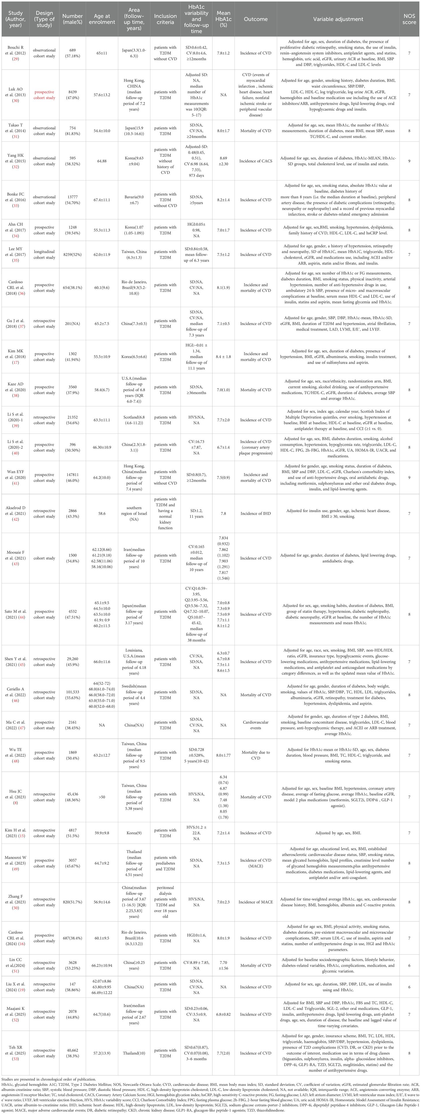 1. Studies investigating HbA1c variability indicators (including SD, CV, HVS, and HGI).