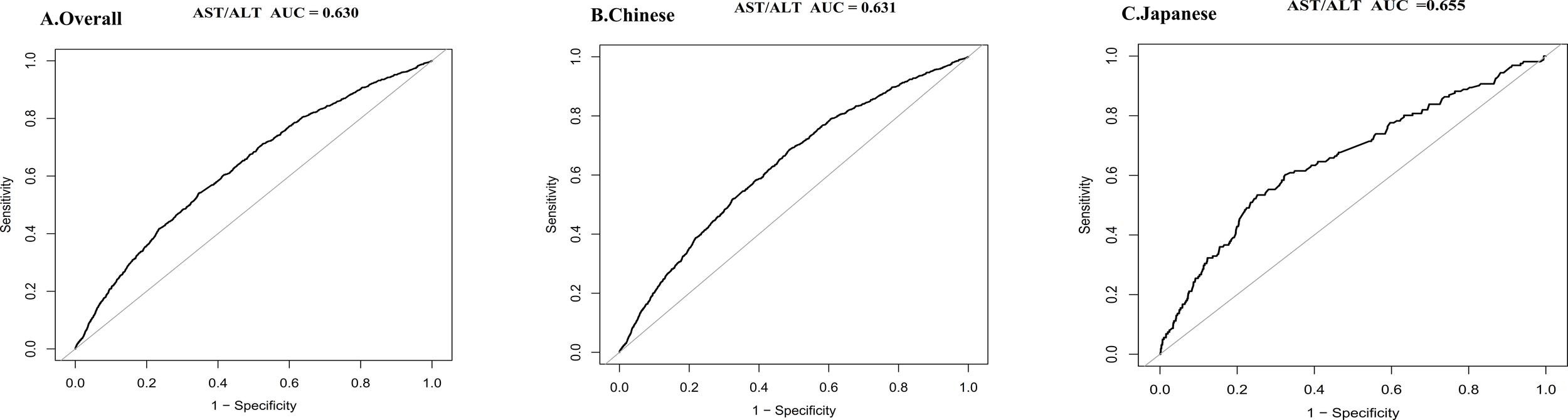 Although there is rising interest in using the AST/ALT ratio as a potential predictor for diabetes in Chinese and Japanese populations, the existing research has limitations. Cross-sectional research designs make it impossible to draw causal inferences and establish temporal relationships. In addition, considerable heterogeneity exists in study populations, with research focusing on either general populations or specific high-risk groups, limiting the generalizability of the results. Moreover, methodological inconsistencies-–including variations in follow-up times, definition of diabetes, and confounding factor adjustments-–complicate the interpretation and comparison of results across studies.